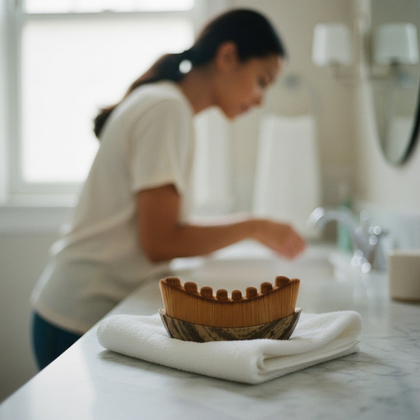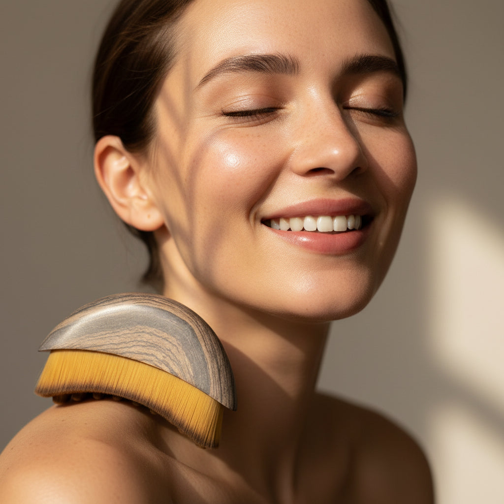 Aucune huile, aucun sérum requis. La brosse s'utilise seule, sur peau sèche ou légèrement humidifiée, pour un soin simple, naturel et sans contrainte