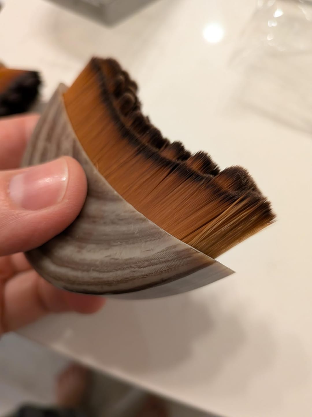 Les poils sont composés de fibres synthétiques ultra-fines de haute qualité, similaires à celles utilisées pour les pinceaux de maquillage.